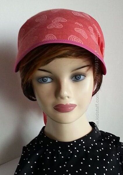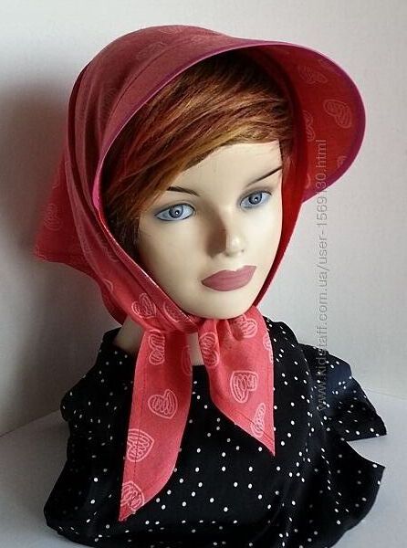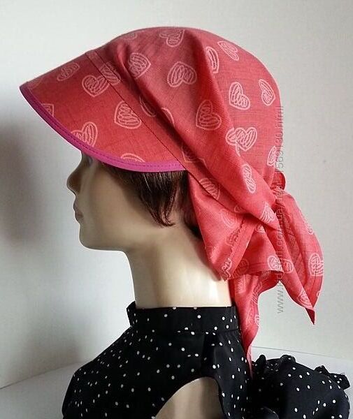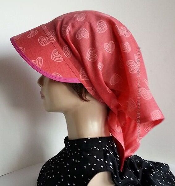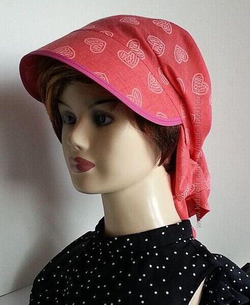 Подробное описание: Бандана. Кулиска. Козырек. Лен рубашечный. Сердечки. Коралл.