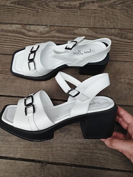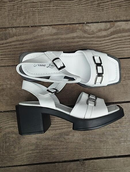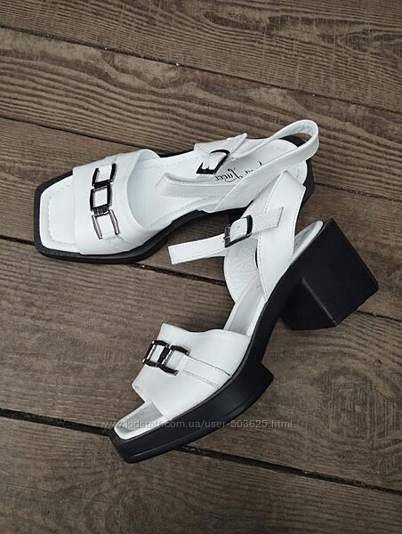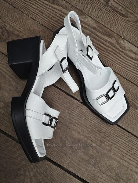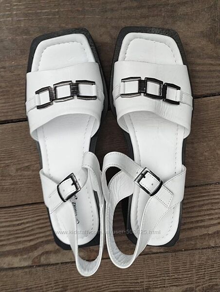 Подробное описание: Білі шкіряні босоніжки на низькому каблуку, Турція