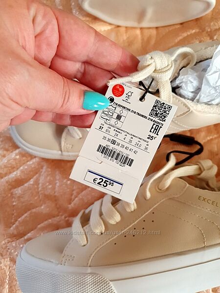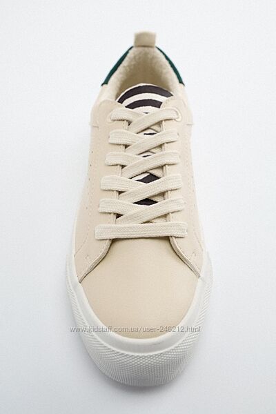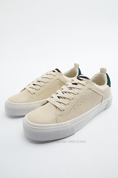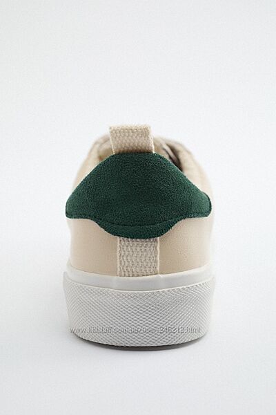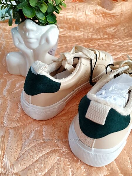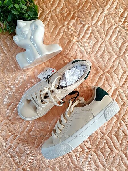 Кеди кросівки Zara.Бежевий колір вгору іспанська еко-шкіра. Позаду зелена вставка.