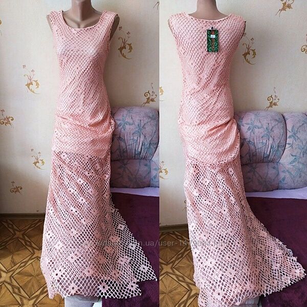 Шикарна довга сукня, бренд Van Gils, вказаний р. 1 Колір пудра. Тканина - сітка з легким блиском, є підклад. Дуже гарна та вишукана сукня. Дивіться заміри!- напівобхват грудей - 40 см тягнеться до 48 см