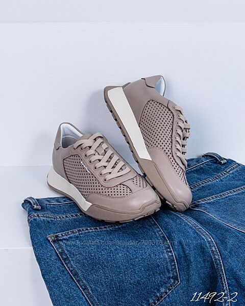 Подробное описание: Кроссовки, натуральная кожа с перфорацией, капучино