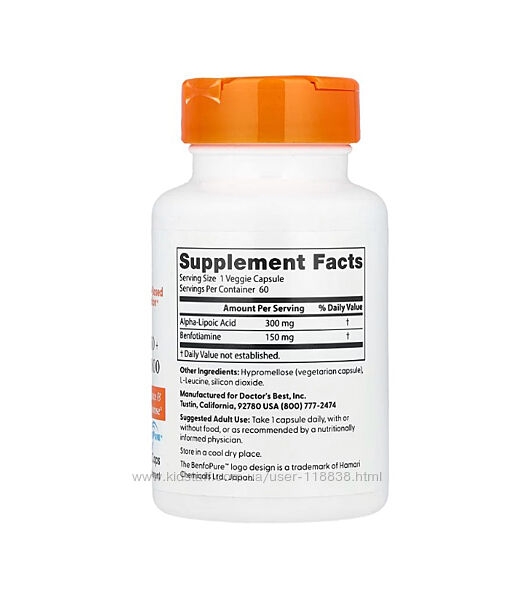 # Doctor´s Best, бенфотіамін 150 та альфа-ліпоєва кислота 300, 60 вегетаріанських капсулОПИС: