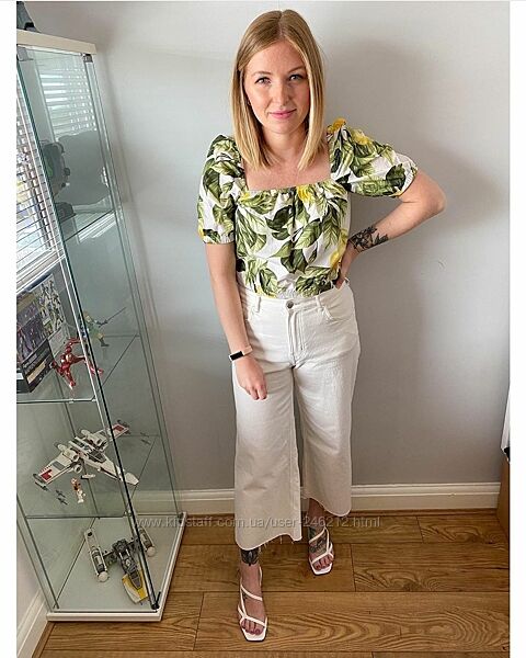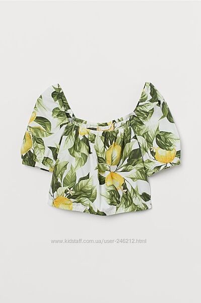 Модный топ блуза H&M c рукавами фонариками в стиле а лярус .Яркий лимоновый принт