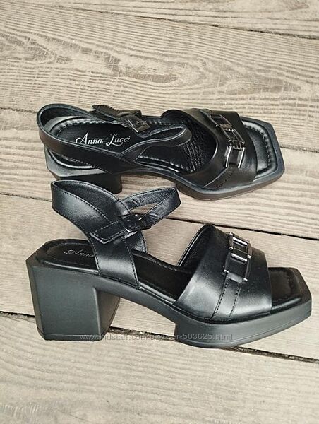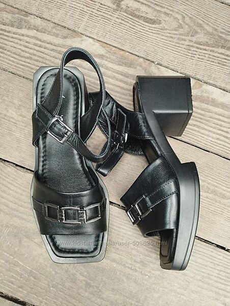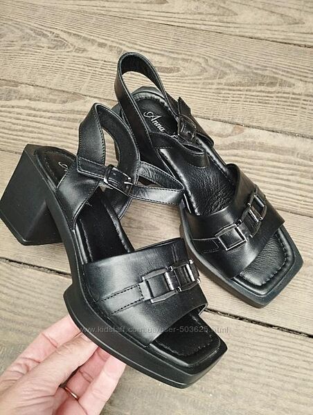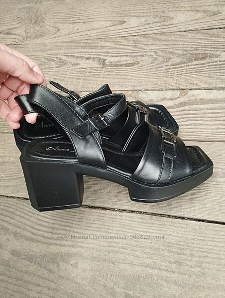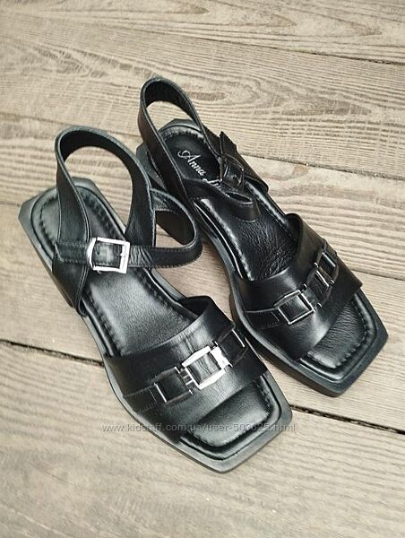 Подробное описание: Чорні шкіряні босоніжки на низькому каблуку, Турція