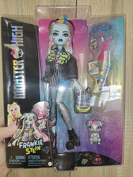 Monster High кукла Монстер Хай Фрэнки Штейн в джинсовой куртке и шортах с питомцем Ватци Оригинал Пересылаю УП НП Фрэнки Штейн зажигает в мире моды в стильном и электризующем образе! Эта кукла поражает своей уникальной внешностью и безупречным чувством стиля, а в комплекте с ней идет ее очаровательный питомец – серебристый щенок Вотзи.