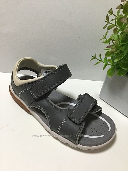 Clarks Rocco Wave k Grey кожаные сандалии размер 30, 31, 32, 32.5, 34. ОригиналСнаружи качественная натуральная кожа серого цвета