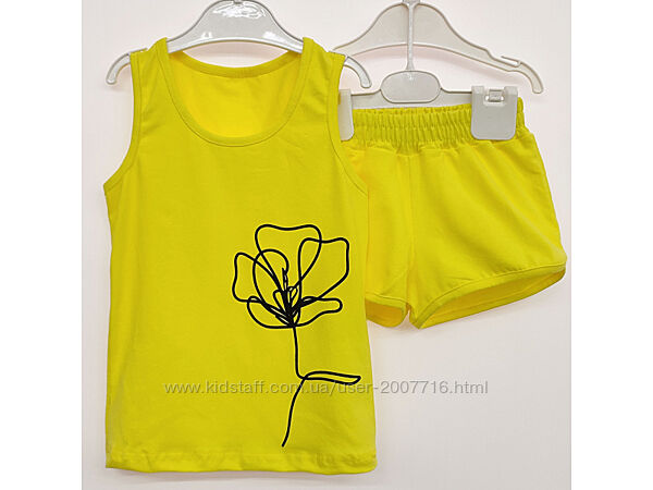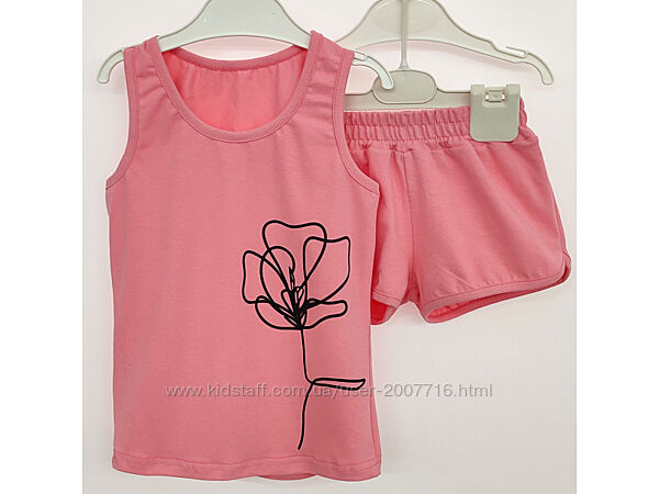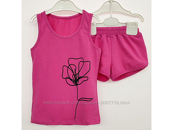 Комплект літній для дівчинки (майка дитяча + коротенькі шорти під широку резинку, декорований принтом), легкий, класний комплект для дівчинки.Пошитий з тонкої тканини фулікра.