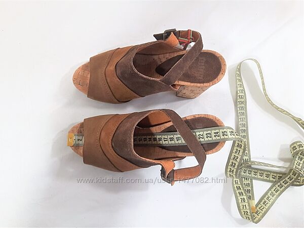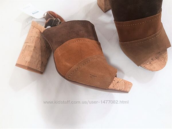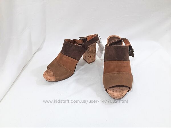 Нові, сток, не носилисяВерх чудової якості, шовковистий, приємний на дотик, натуральний нубук, всередині натуральна шкіра, устілка коркова + шкіра, стійкий каблук. Шикарні гарні босоніжки, м´які, комфортні. На правому невеликий слід від ручки.