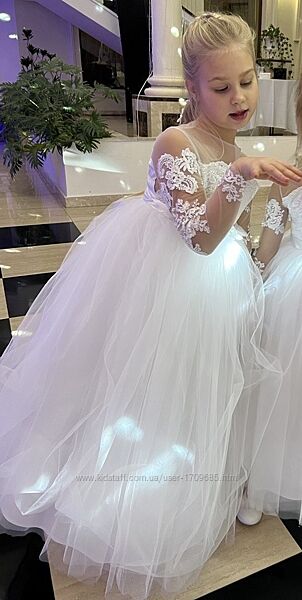 Праздничное белое платье на рост 122 - 128 см и на рост 132 - 136 см