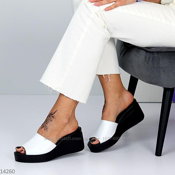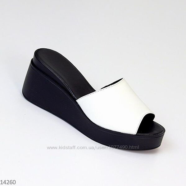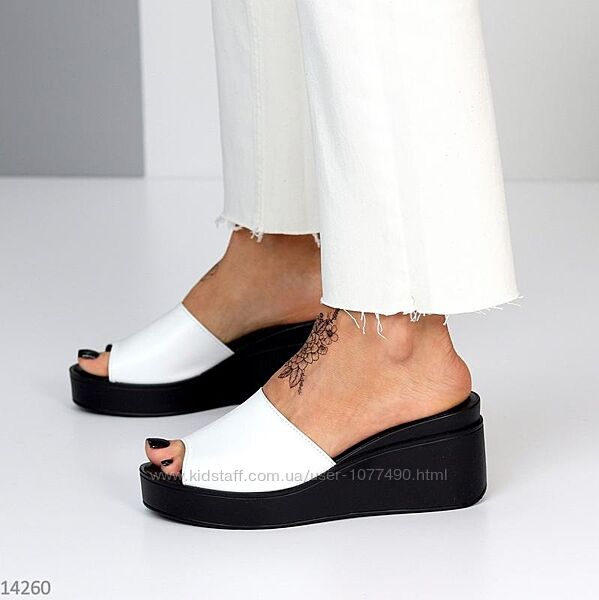 Подробное описание: Шкіряні білі шльопанці на танкетці, на високій платформі, шлепки кожа
