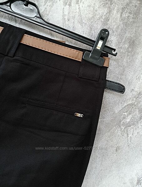 Женские штаны- джоггеры. Низ изделия на резинке,имеются боковые накладные карманы, сзади имитация врезных карманов. Прилагается тонкийкоричневый ремешок.