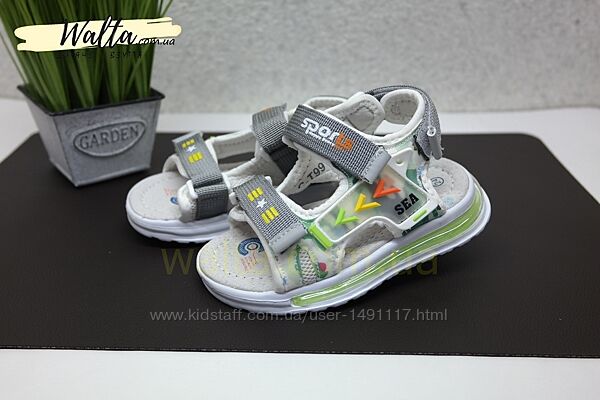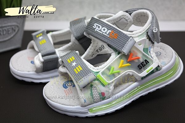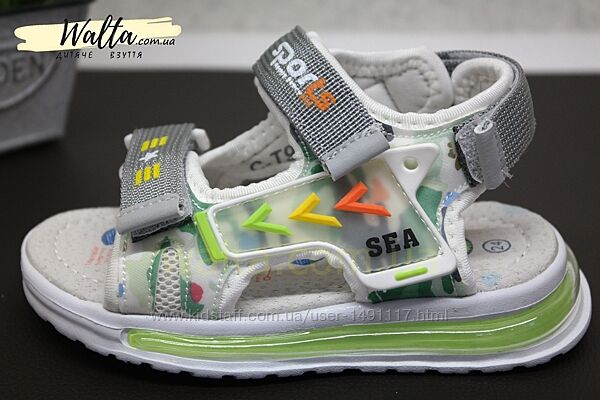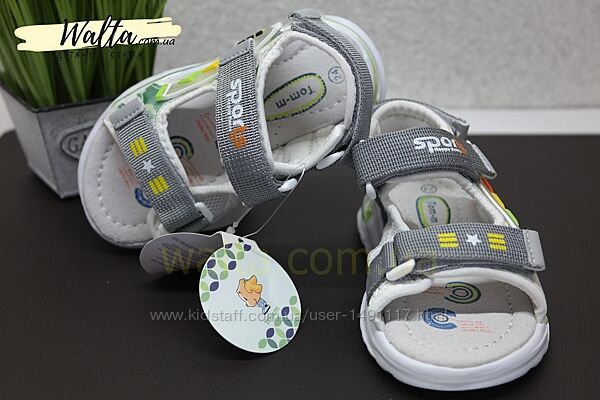 Подробное описание: 25-28р Том. м дитячі босоніжки сандалі хлопчикам сірі з салатовим 3 липучки