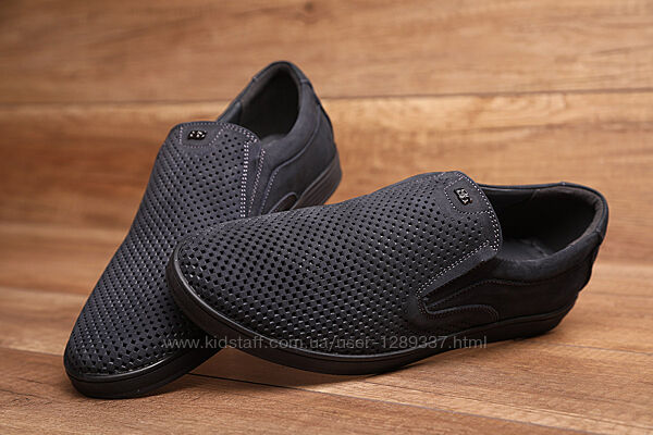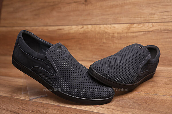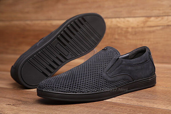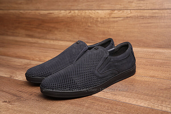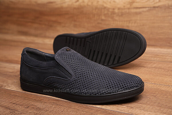 Подробное описание: Мужские летние кожаные туфли с перфорацией темно-синие на резинке
