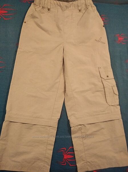 Фото 3 - размер 128. Это трансформер. С помощью змейки на штанине можно брюки превратить в шорты.