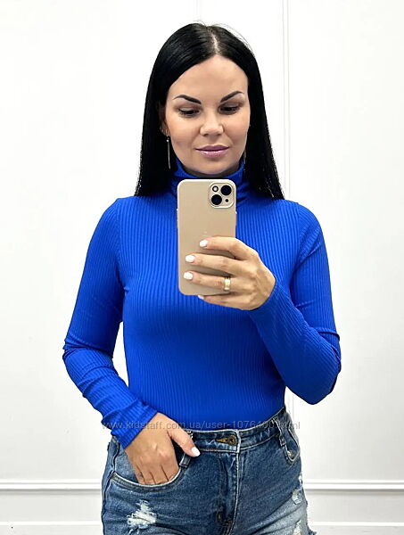 Особливості водолазки в рубчик: - сезон – весна/осінь (взимку як додатковий утеплюючий шар); - середня довжина; - високий комір під горло; - довгі вшиті рукави; - фактура - широкий рубчик Довжина від плеча: 61-62 см Довжина рукава: 60-62 см Висота вороту: 7 см Матеріал: Рубчик мустанг