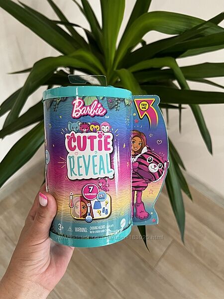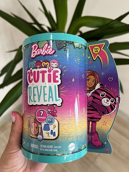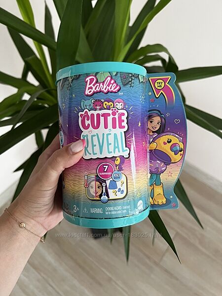Дітям сподобається відкривати всі сюрпризи в цій серії Barbie Cutie Reveal, натхненній джунглями.