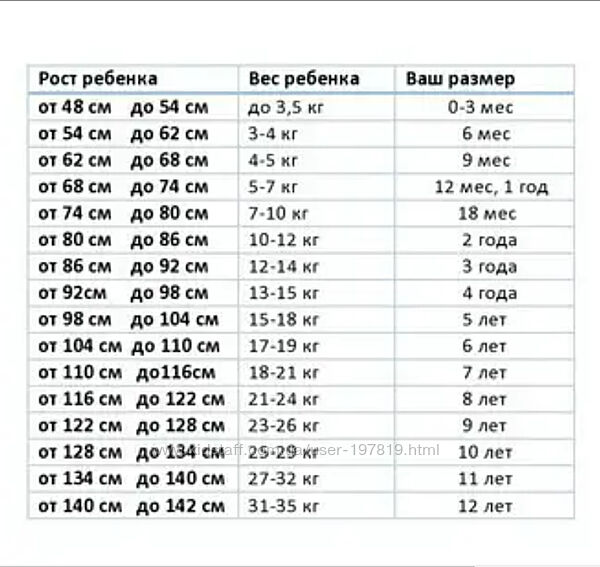 | Рост | 80 см, 86 см, 92 см, 98 см, 104 см, 110 см, 116 см, 122 см, 128 см, 134 см, 140 см, 146 см |
