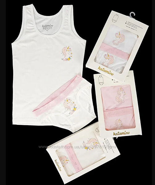 Набор 6 шт. Комплекты нижнего белья для девочки 1-10 лет , набор комплект майка и трусы ТМ Katamino. Турция. Хлопок. Премиум качество. Нижнее белье девочке в садик, в школу.Майка и трусики с Минни Маус. Майка и трусики с бабочкой, с пони, с единорогом.