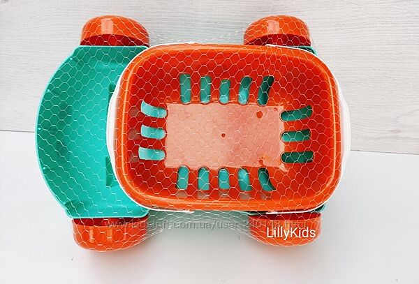 На візку надійно закріплений зручний кошик з ручками. Цікаво, що кошичок на візочку можна зняти та гратися окремо. У ньому зручно переносити фрукти, овочі, посуд, пісочні набори та інші іграшки. Розмір кошичка дозволяє брати його на прогулянку, у пісочницю чи в дитячий садочок.