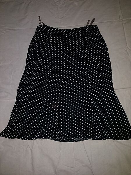 продам легкую юбку б/у фирмы C&A после дочери. размер 46. состав 100% вискоза, черный цвет в горохи, подкладка - полиэстер. носилимало, состояние почти идеал.