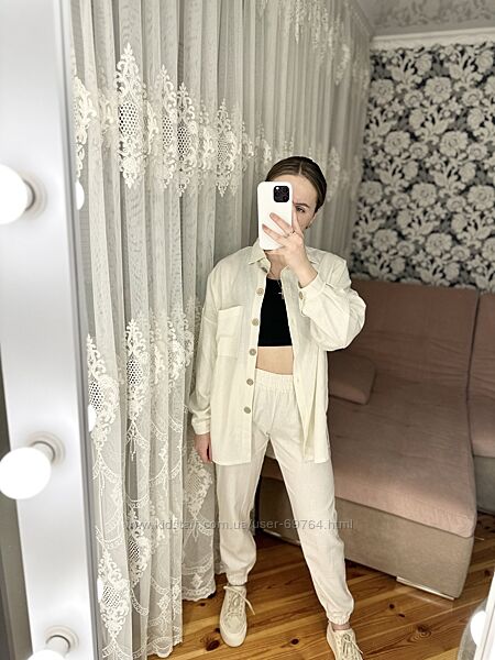 Льняной костюм костюм двойка, штаны джогеры и рубашкаТкань- лен, которая подойдет для любого случая