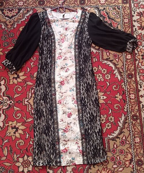Подробное описание: жіноче квіткове плаття з гіпюровими вставками сукня Medini р. М