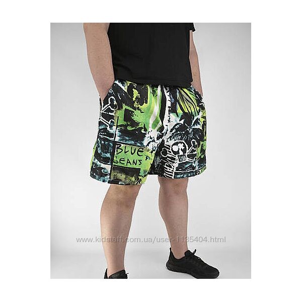 Шорти чоловічі великих розмірів. Модель вище коліна з яскравим принтом. З боків розташовані дві врізні кишені. Сучасний принт. Пояс продублеван шнурком Сітчаста підкладка у вигляді плавок. Це ідеальний варіант для пляжу та відпочинку. Добре будуть виглядати з майками та футболками.Виробник : TOVTA