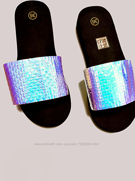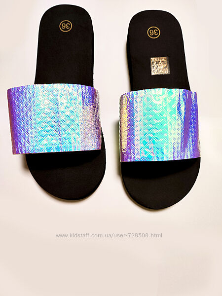 Shein. Из Англии. В наличии. Голографические фольгированные шлепанцы.