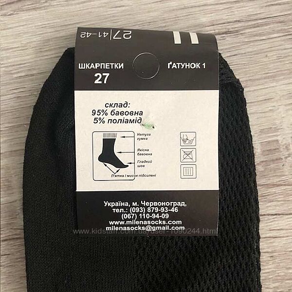 Подробное описание: Шкарпетки чоловічі прості бавовна сітка Милена Носки мужские
