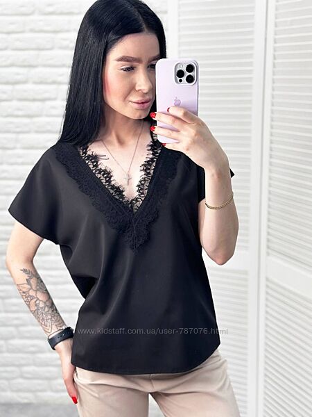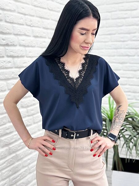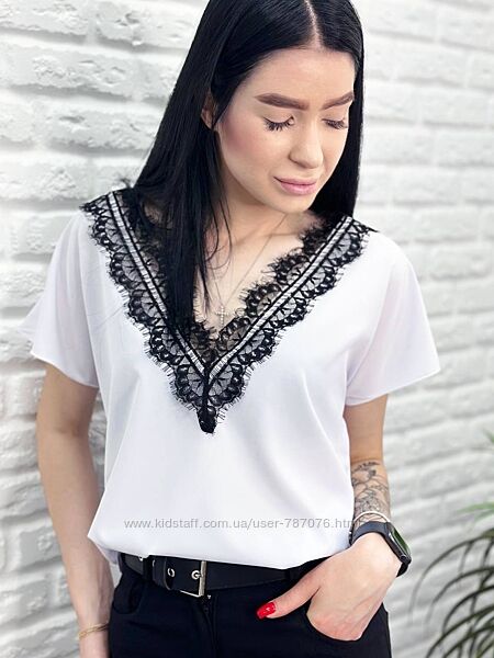Подробное описание: Жіноча блузка з вирізом та мереживом Brenda,42-44,46-48,50-52р,4 кол