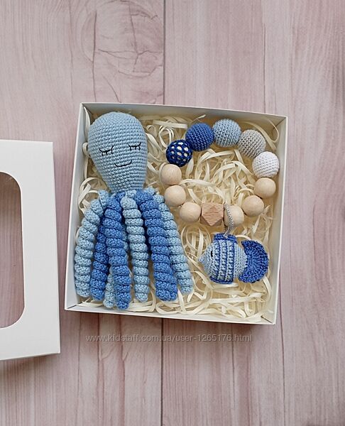 Подробное описание: Подарочный набор для новорожденного, игрушка осьминог и грызунок прорезыват
