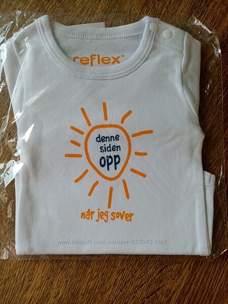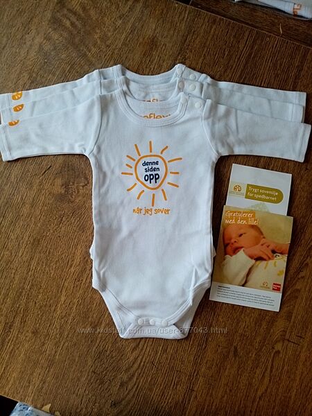 Боді для новонародженого малюка з довгим рукавом, з малюнком (принтом),на кнопках. На зріст 56 см. Фірма - Barnas hus Reflex - Норвегія.Склад тканини - 100 % коттон.