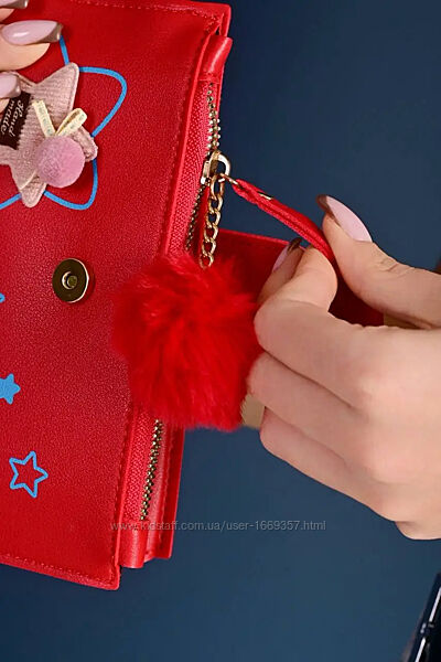 Кошелек изготовлен из искусственной кожи, закрывается на кнопкуРазмер 18,5*10 см