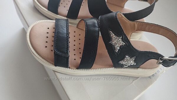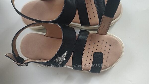 Класні босоніжки на дівчинку - Geox Respira, попереду є липучка- можна регулювати ширину, позаду є застібка, підійдуть на підйом, дуже зручні та якісні.Б/у у гарному стані