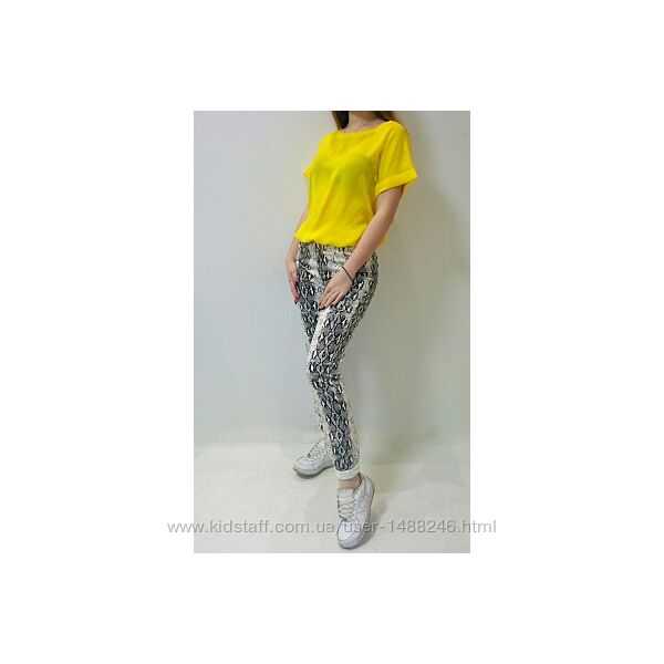 Брюки котоновые принт питонСостав: 97% хлопок, 3% эластан