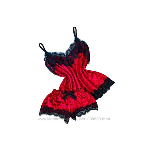 Нежный комплектик маечки с шортиками украшен кружевом. Спина и плечи открыты. Топ держится на регулируемых бретелях. Эластичный материал