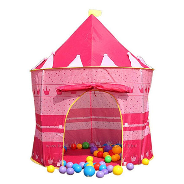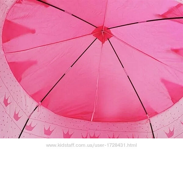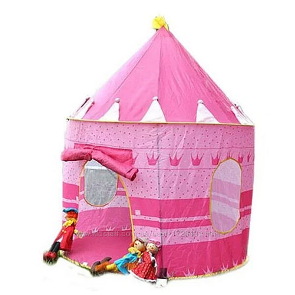 Детская палатка игровая розовая- Замок принцессы, шатер для дома и улицы.Детская игровая палатка Dream Castle – прекрасный подарок для малыша. Новый дизайн и веселые рисунки на ткани палатки привлекут к ней внимание ребенка. Она очень устойчива, поэтому малыши от года могут играть в ней. Возьмите детскую палатку домик на отдых и предложите поиграть в ней.