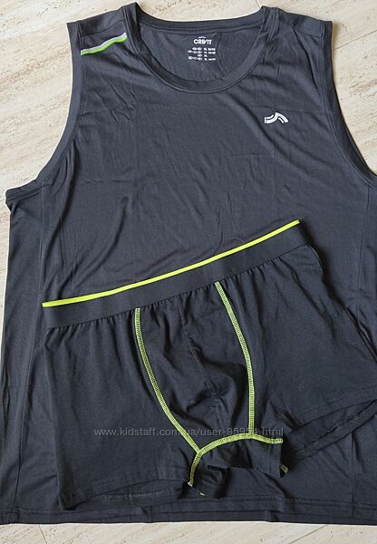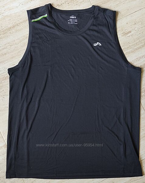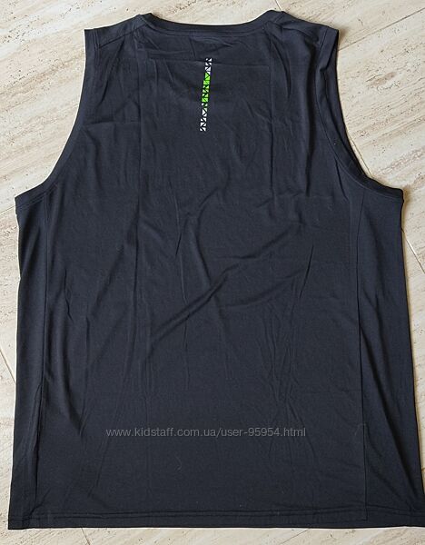 Майка-топ: приємний, легкий та м"який трикотаж, 100% поліестер, швидко відводить вологу в боковій частині - дихаючі дрібно-сітчасті вставки виміри: довжина спереду 73см, ззаду 77см, ширина під руками 60см, талія 58см, ширина внизу 58,5см, пройма 25,5-26см, плече 10,5см, між плечима 39,5см