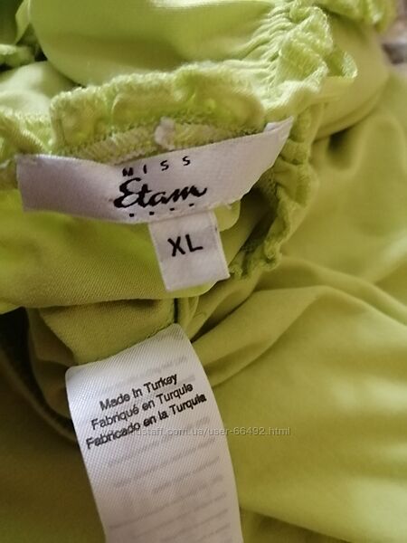 Тонкая трикотажная футболочка, крой блузы. Французский бренд высокого ценового сегмента miss Etam. Размер XL. Купила как новую или в состоянии новой, но на меня очень большая. Наверно, подойдет на евроразмер 46, 48 или даже 50.Замеры дам.