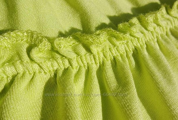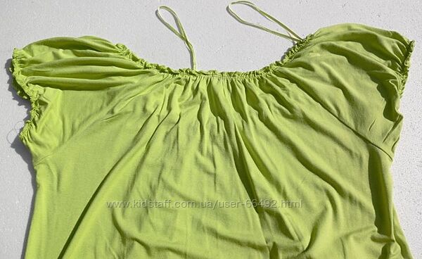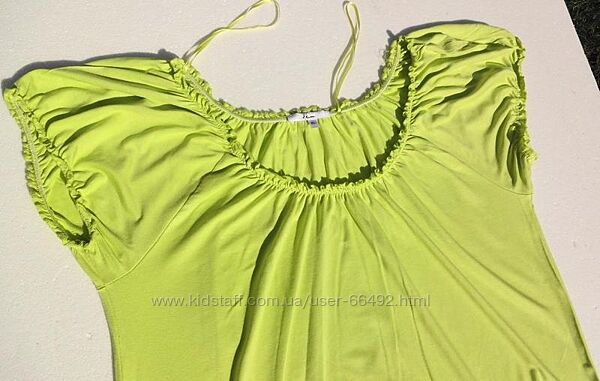 Цвет салата с легким лимонным оттенком, яркая, цвет приятный, не режет глаза. Легкая, мягчайшая вискоза 95%, эластан 5%. Можно носить ниже плеч или как обычно.