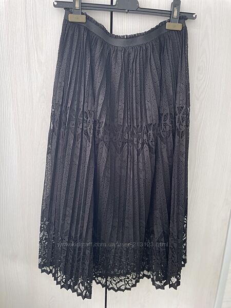 Гарна мереживна спідниця пліссе Castro, купувала в Ізраїлі ,розмір 42 євро, за рахунок гумки на поясі підійде і на менший розмір, і на більший. Стан ідеальний, довжина 75 см, по поясу 35 см, добре тягнеться, стегна вільно. Довжина підкладки 47 см.
