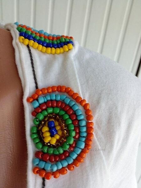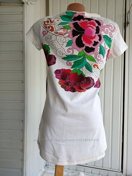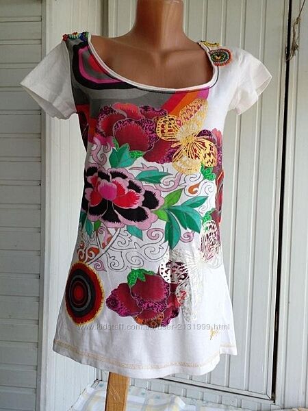 Футболка туника Desigual (Десигуал) Іспанія! натуральна подовжена майка - туніка 100% cotton яскравий Квітковий принт, розшито бісером. стан нової речіпог 42-48, піт 39-43, довжина 63/67, рукав 11