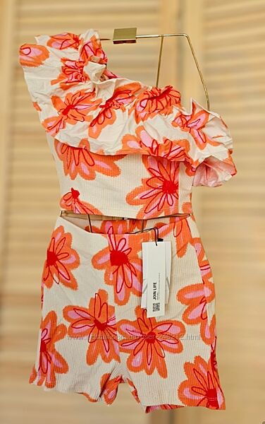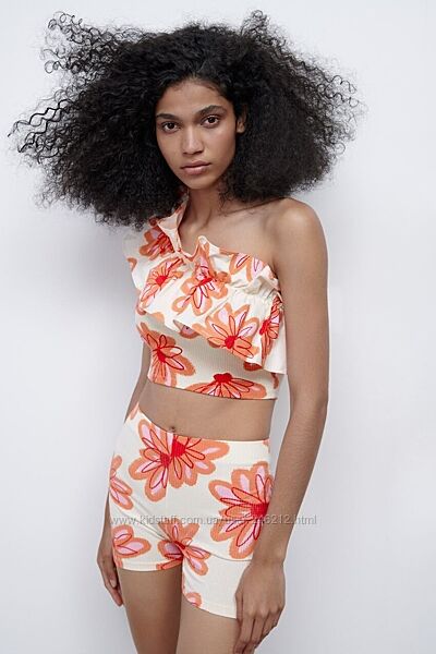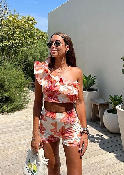 Яркий цветочный костюм Zara из последней коллекции !Этот летний трикотажный костюм Zara в рубчик - это идеальный выбор для тех, кто хочет выглядеть стильно и модно в жаркие летние дни.