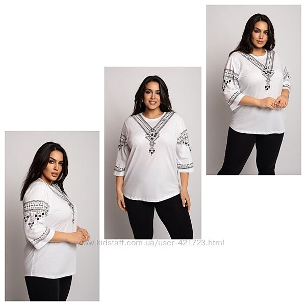 Блуза Туника вышиванка принт батал, полубатал. Турция, качество