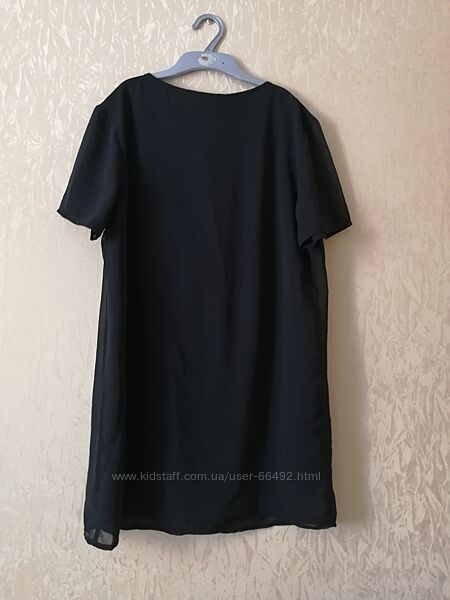 Универсальная шифоновая туника или короткое платье британского бренда Сotton Traders, указан английский размер 14. Сверьте мерки, шифоновые вещи должны иметь запас. Новая или в состоянии новой. Без навесной бирки и без признаков стока. Черная. На тонкой трикотажной подкладке.Пог 54