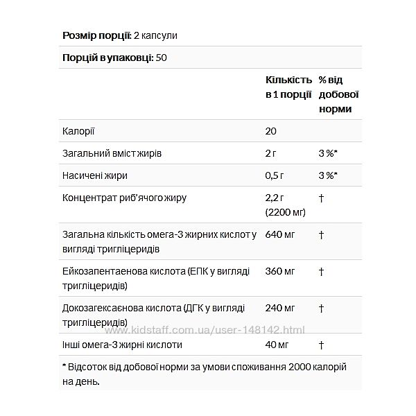 Подробное описание: Омега-3 California Gold Nutrition рыбий жир качество 180 мг ЭПК /120 мг ДГК
