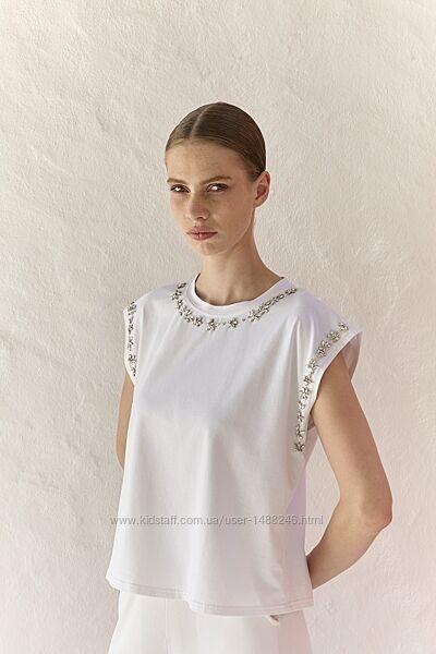 Футболка отделка камушками, Marina V Paris, ФранцияСостав: 95% хлопок, 5% эластан