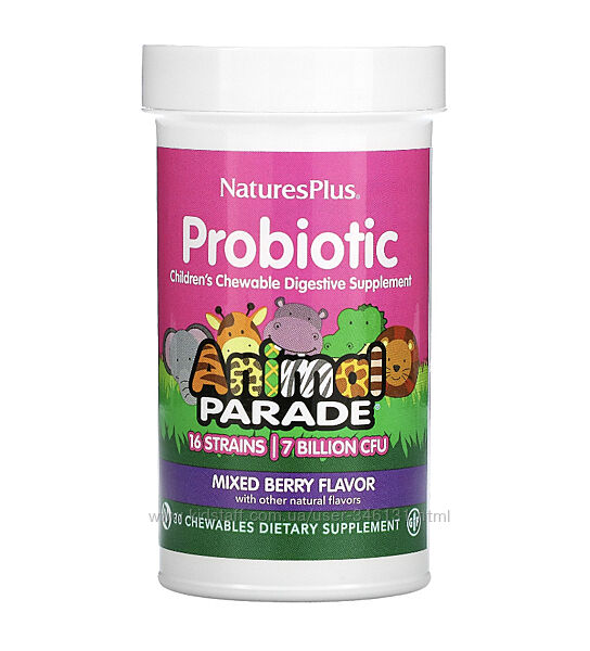 NaturesPlus, Animal Parade, Пробиотик, детская жевательная добавка для улучшения пищеварения, смесь ягод, 30 жевательных таблетокОПИСАНИЕ: