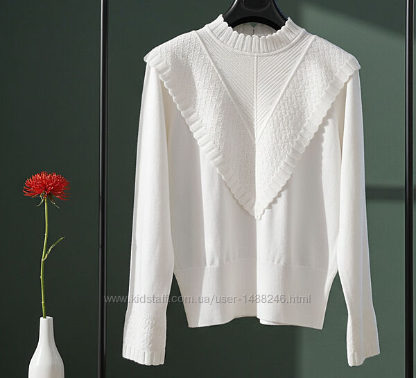 Подробное описание: Пуловер белого цвета с рюшами Derhy, Франция