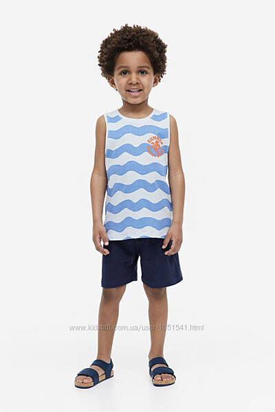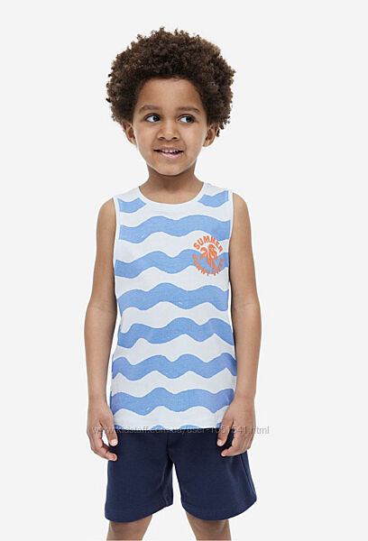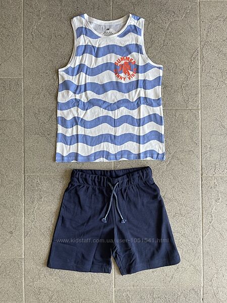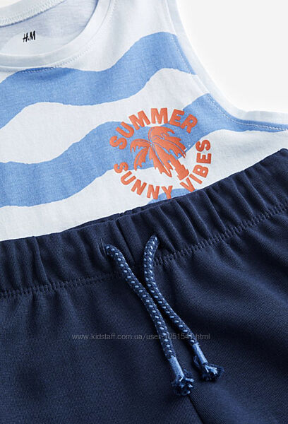 Літній комплект від H&M , майка- з котонового трикотажу з принтом і шорти-плотний трикотаж - двунить , на резинці ( є шнурок утяжка на таліі ) без кішеньСКЛАД- бавовна 100%